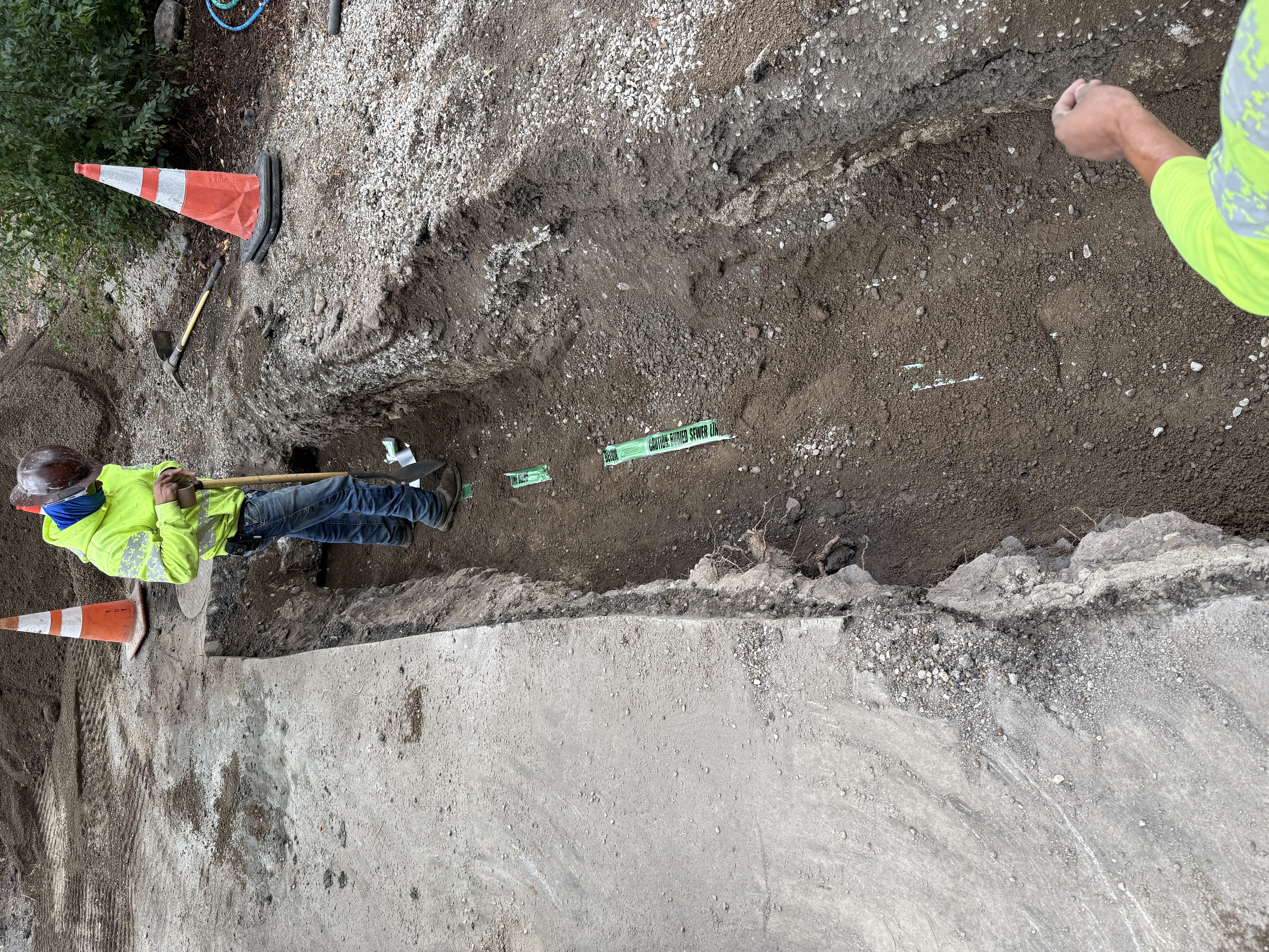 soil and open trench with some pavement nearby overcast daylight open, no visible congestion