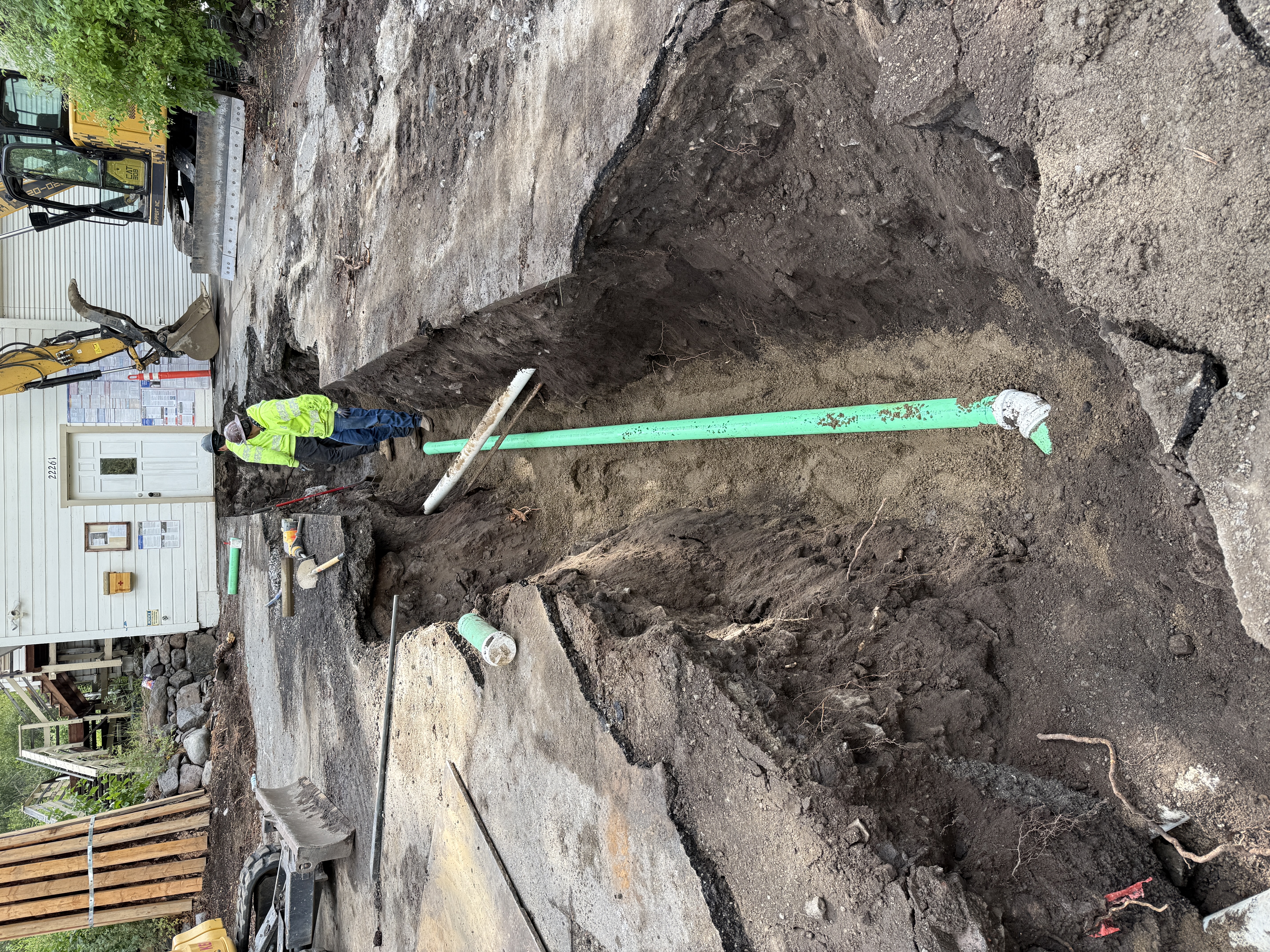 paved area with exposed soil in trench natural daylight clear access for trench work