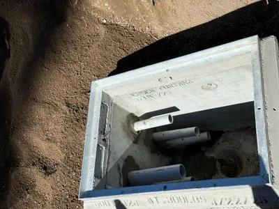 Caution tape is visible for trench marking but no other barriers or controls are evident.