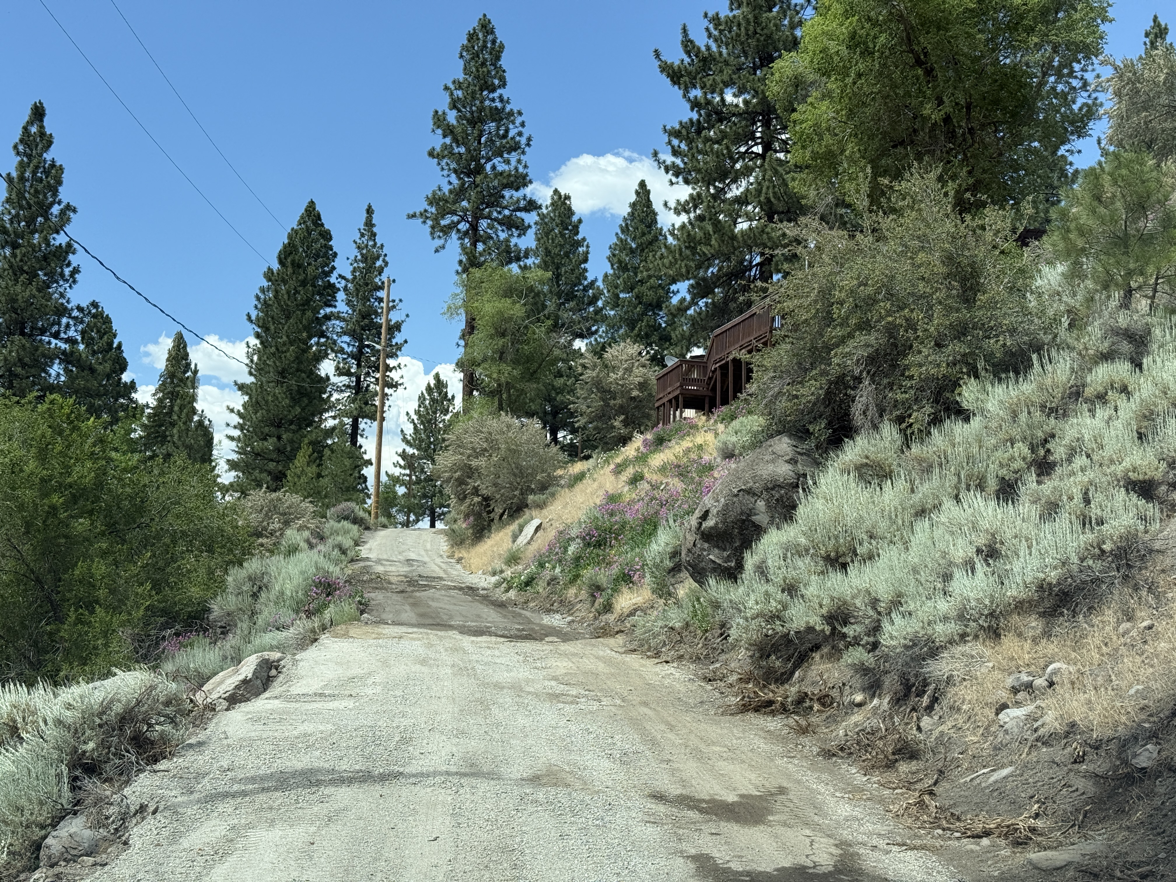 gravel road on hilly terrain clear weather with natural lighting gravel road suggests access