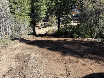 dirt and gravel with open trench sunny with clear lighting access appears open with no visible congestion