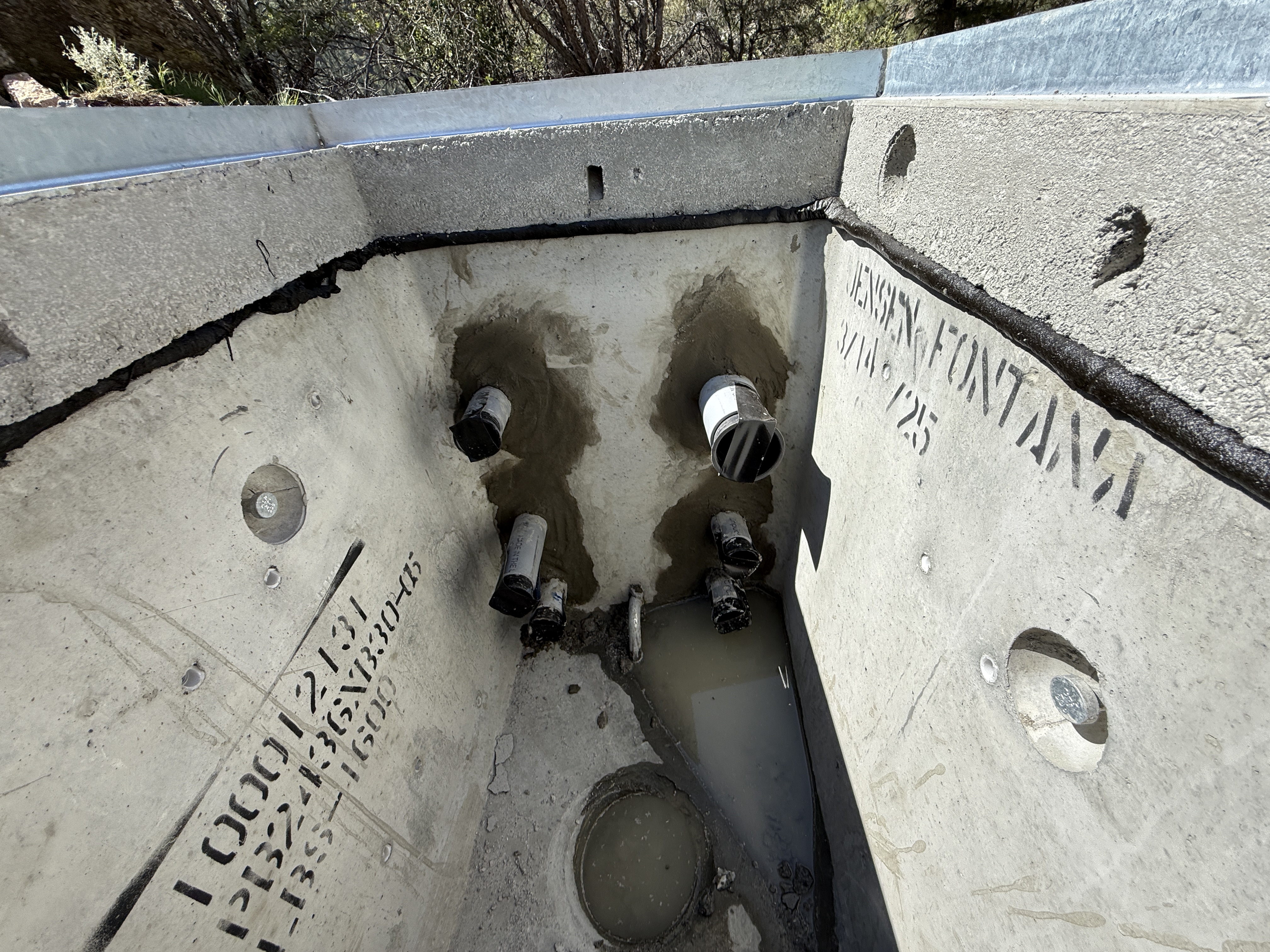concrete interior surfaces with pooling water natural daylight, no adverse weather visible appears to be limited access inside the structure