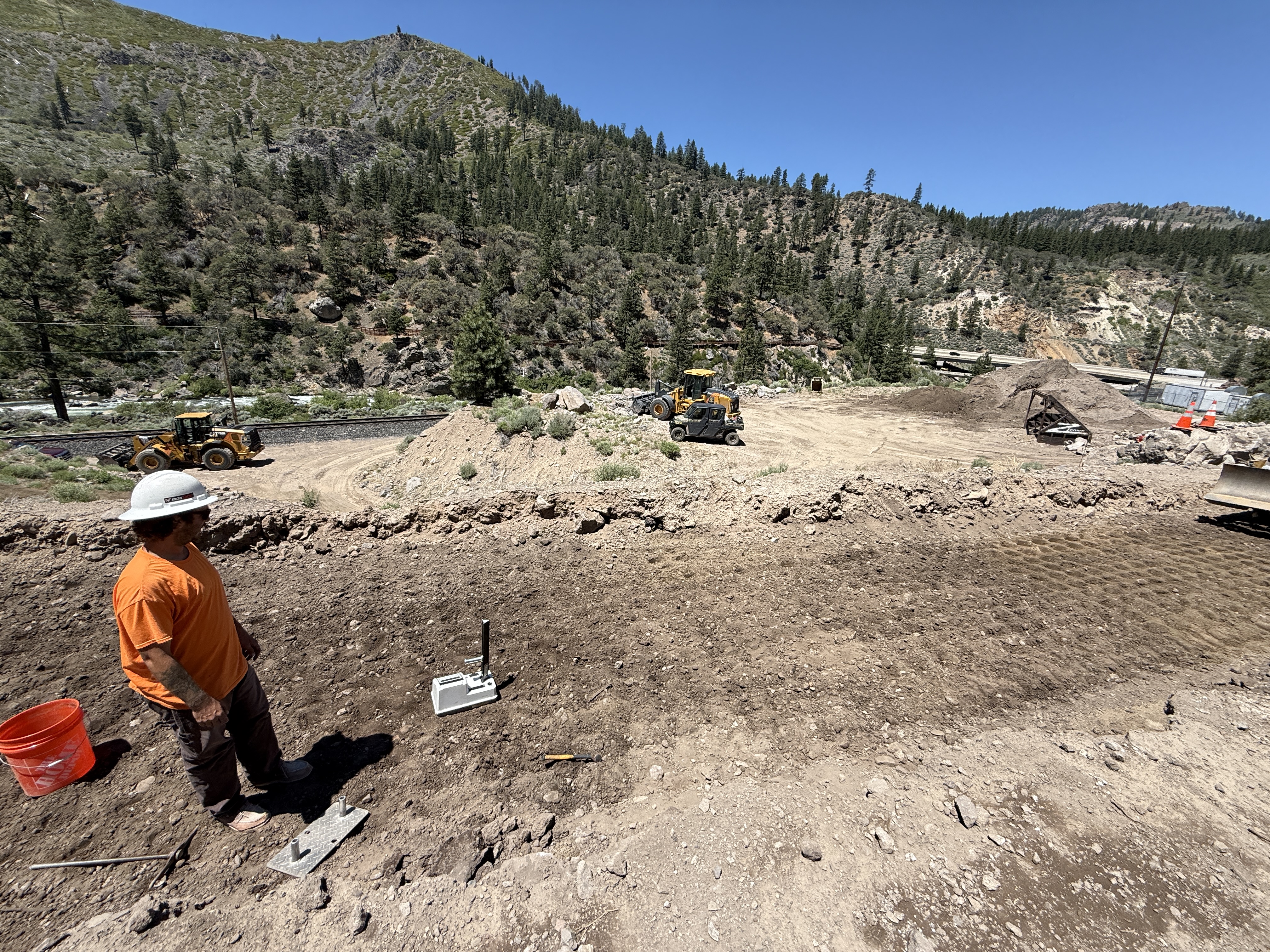 loose soil and dirt clear and sunny open space with visible pathways for equipment