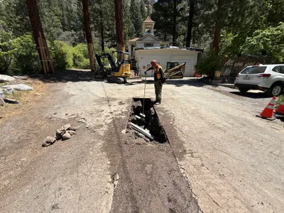 dirt and rock trench clear day with natural sunlight no visible congestion or access issues