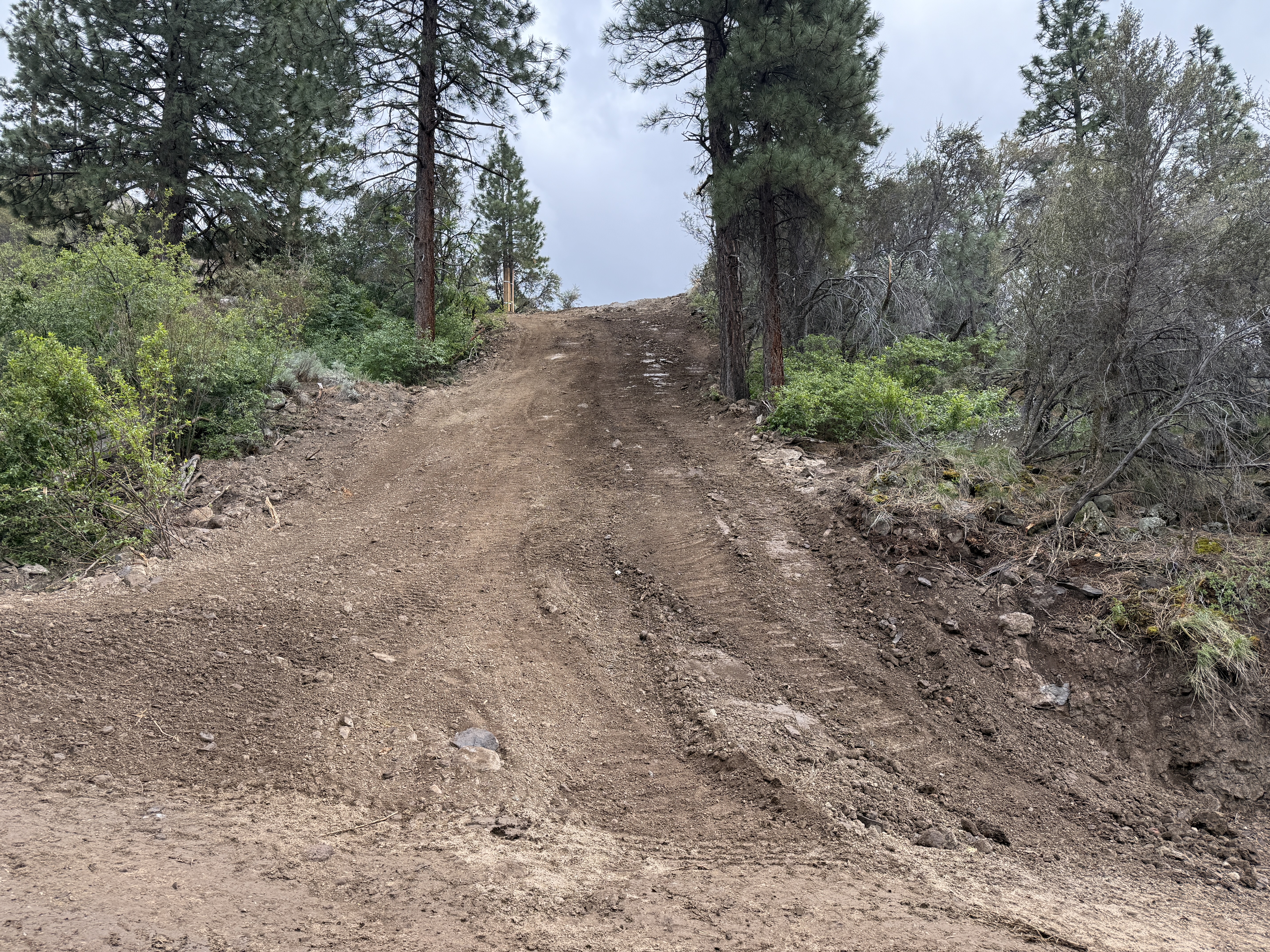 dirt with tire tracks overcast steep path, no visible congestion
