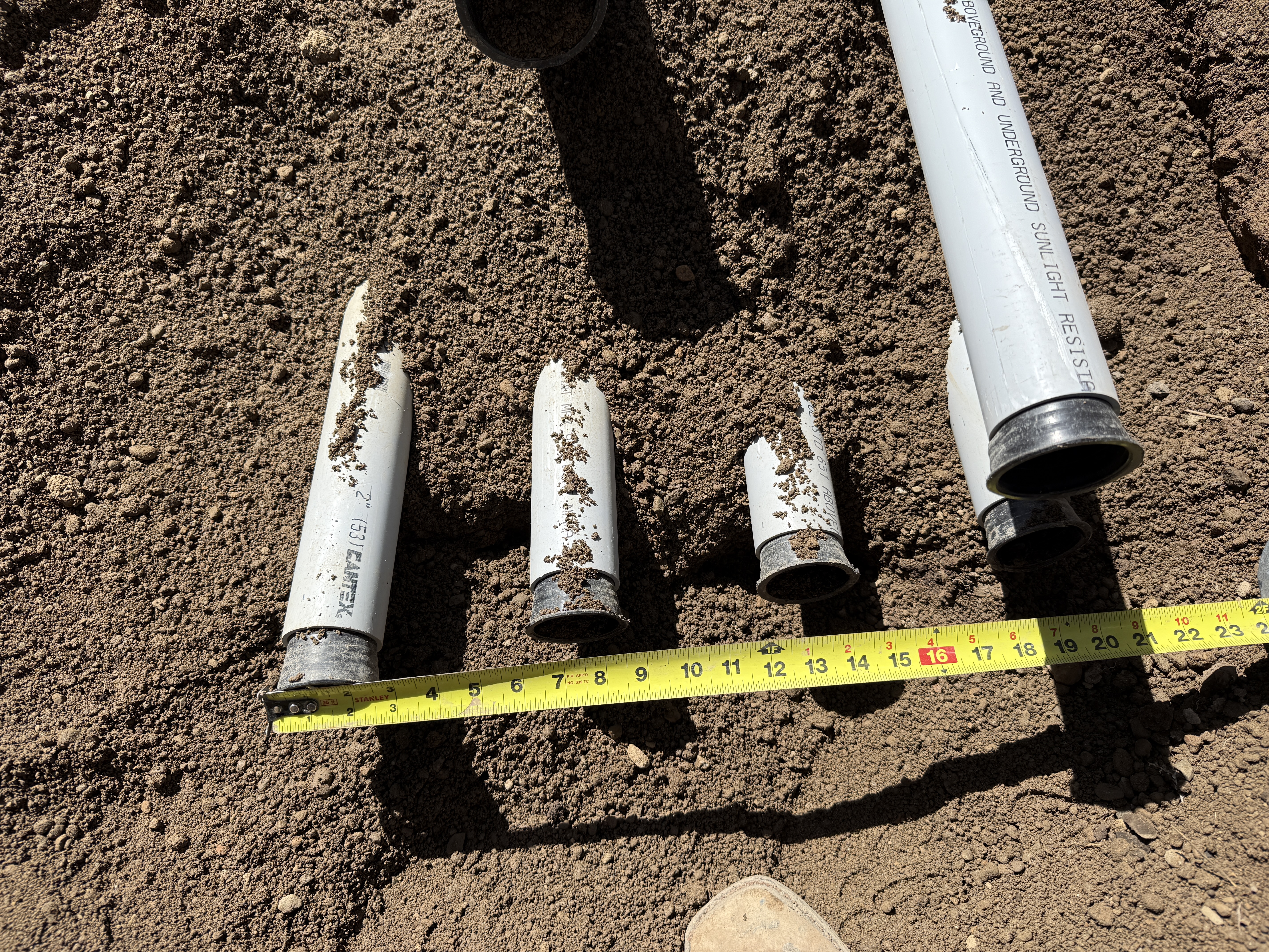 dry soil sunny with clear lighting pipes laid directly on soil
