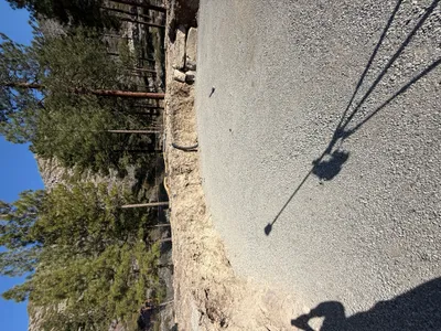 sandy soil on a forested slope clear day with good lighting materials staged along trench side