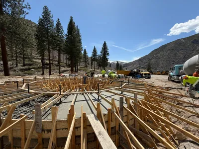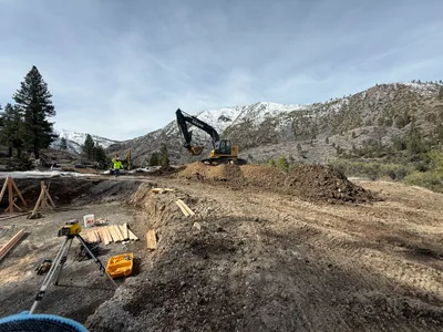 loose soil and gravel partly cloudy relatively open with some equipment present