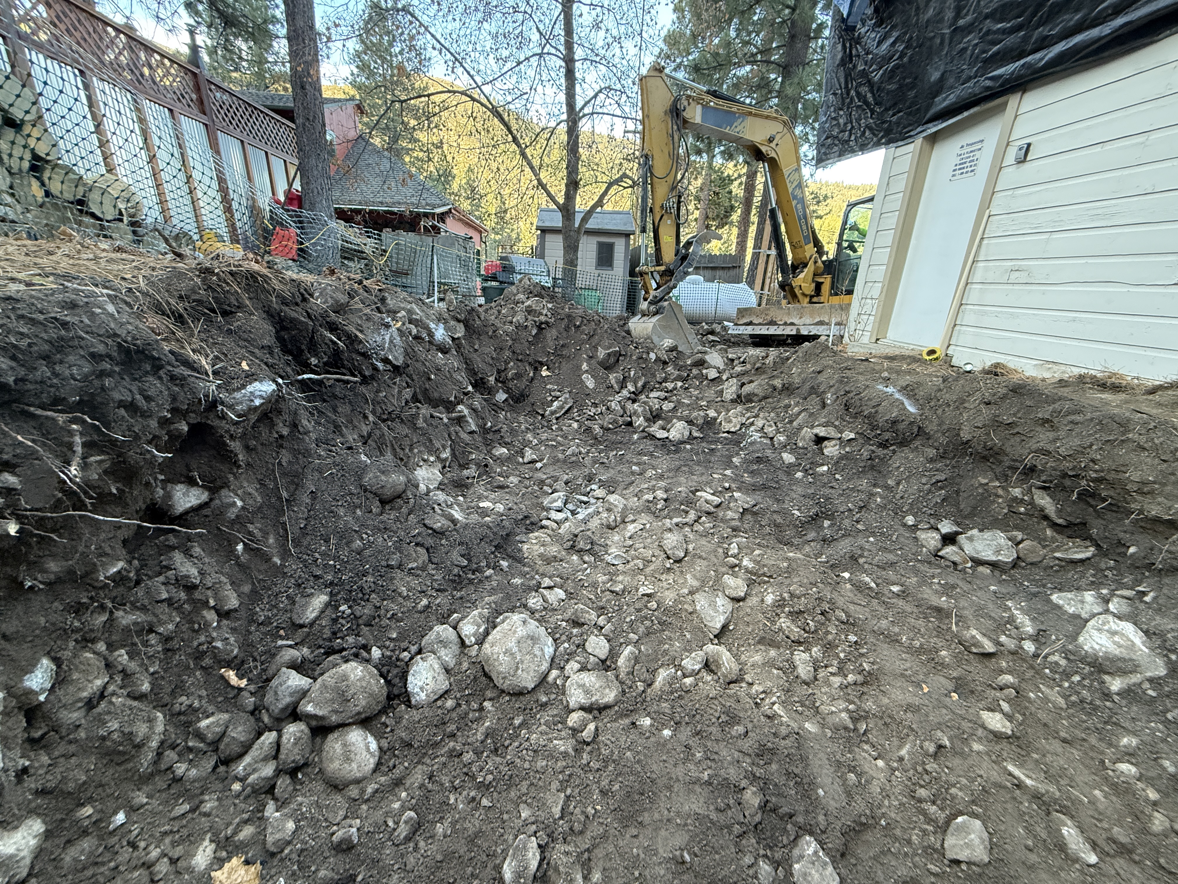rocky soil with trench clear lighting limited access area with fencing