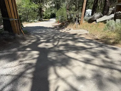 dirt road with gravel clear sunlight with visible shadows unobstructed access along the road