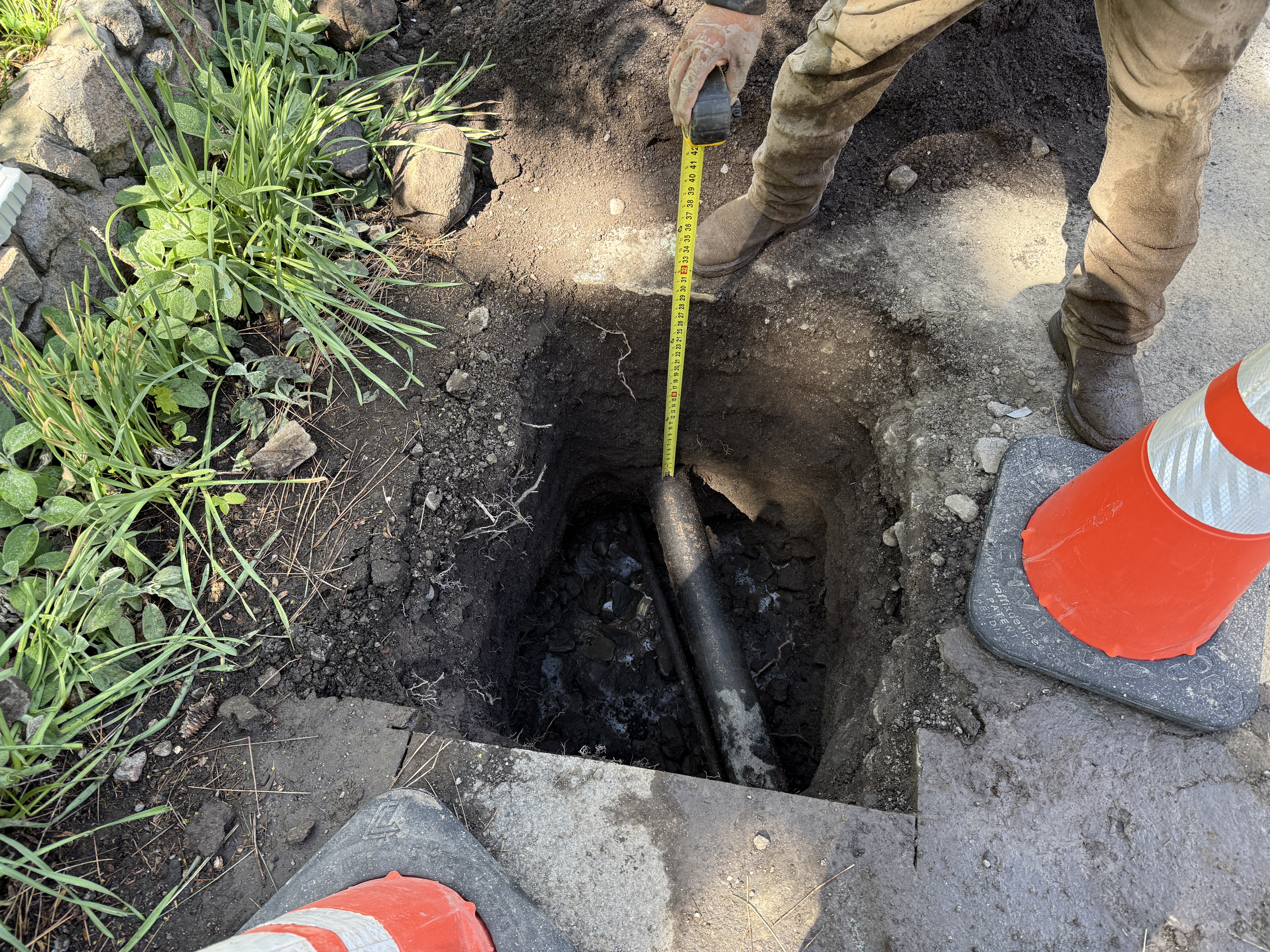 soil and adjacent vegetation clear daylight conditions limited access around excavation area due to cones
