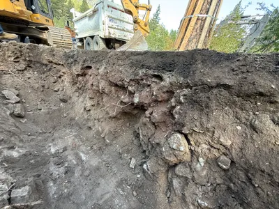 soil and pavement next to trench sunny machines appear to have sufficient space for operation
