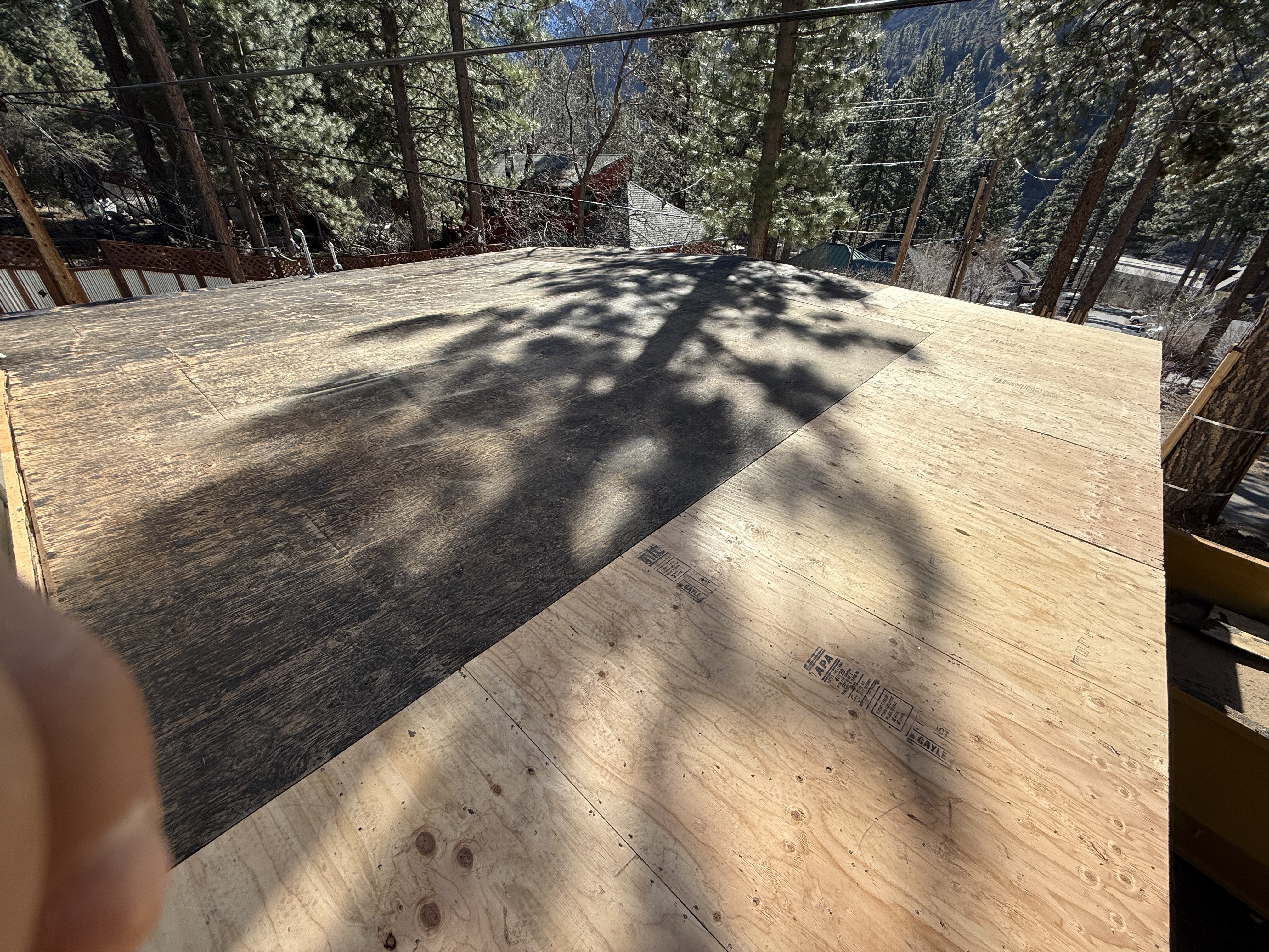 plywood roof surface sunny with visible shadows no visible congestion or access issues