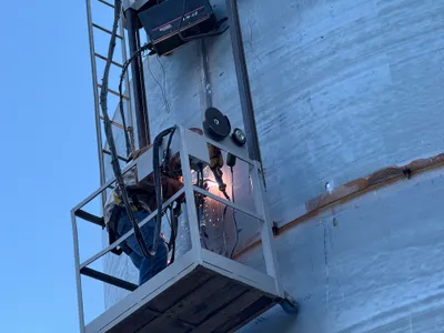 A large tree has been uprooted and lies horizontally in a cleared area of soil. The roots are exposed, and there are no visible construction activities or equipment in the immediate vicinity. Standing trees and distant mountains provide a backdrop for the scene.