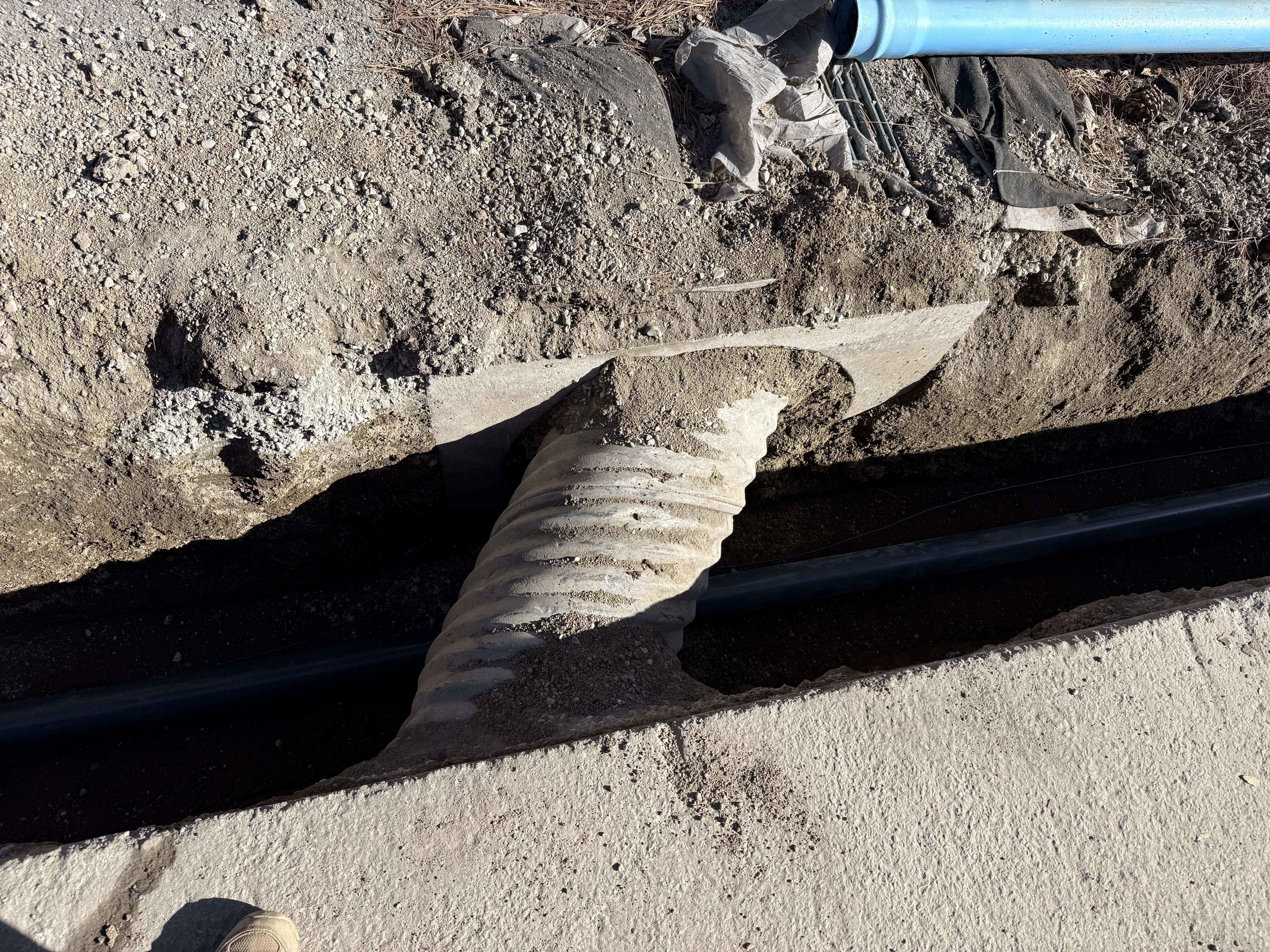 exposed soil and partial concrete sunny with clear lighting open trench with accessible sides