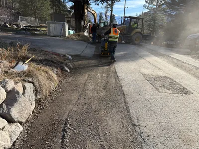 pavement with open trench overcast limited access due to open trench