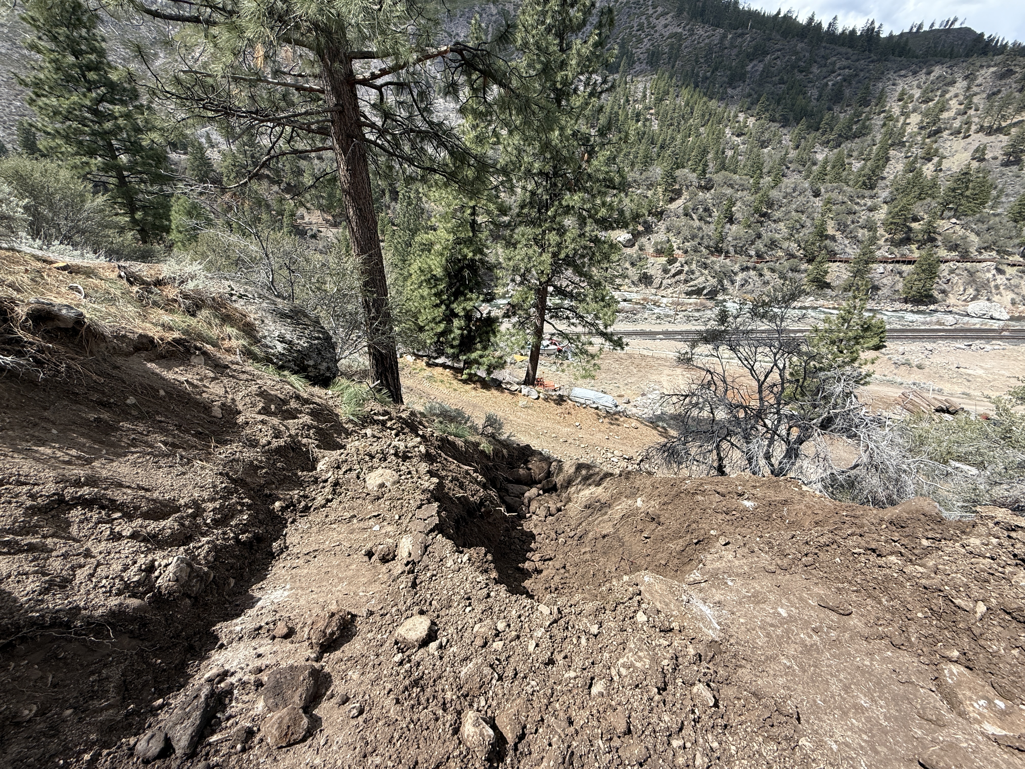 dirt and rocky hillside with trench clear weather with adequate natural lighting no visible congestion or staging areas