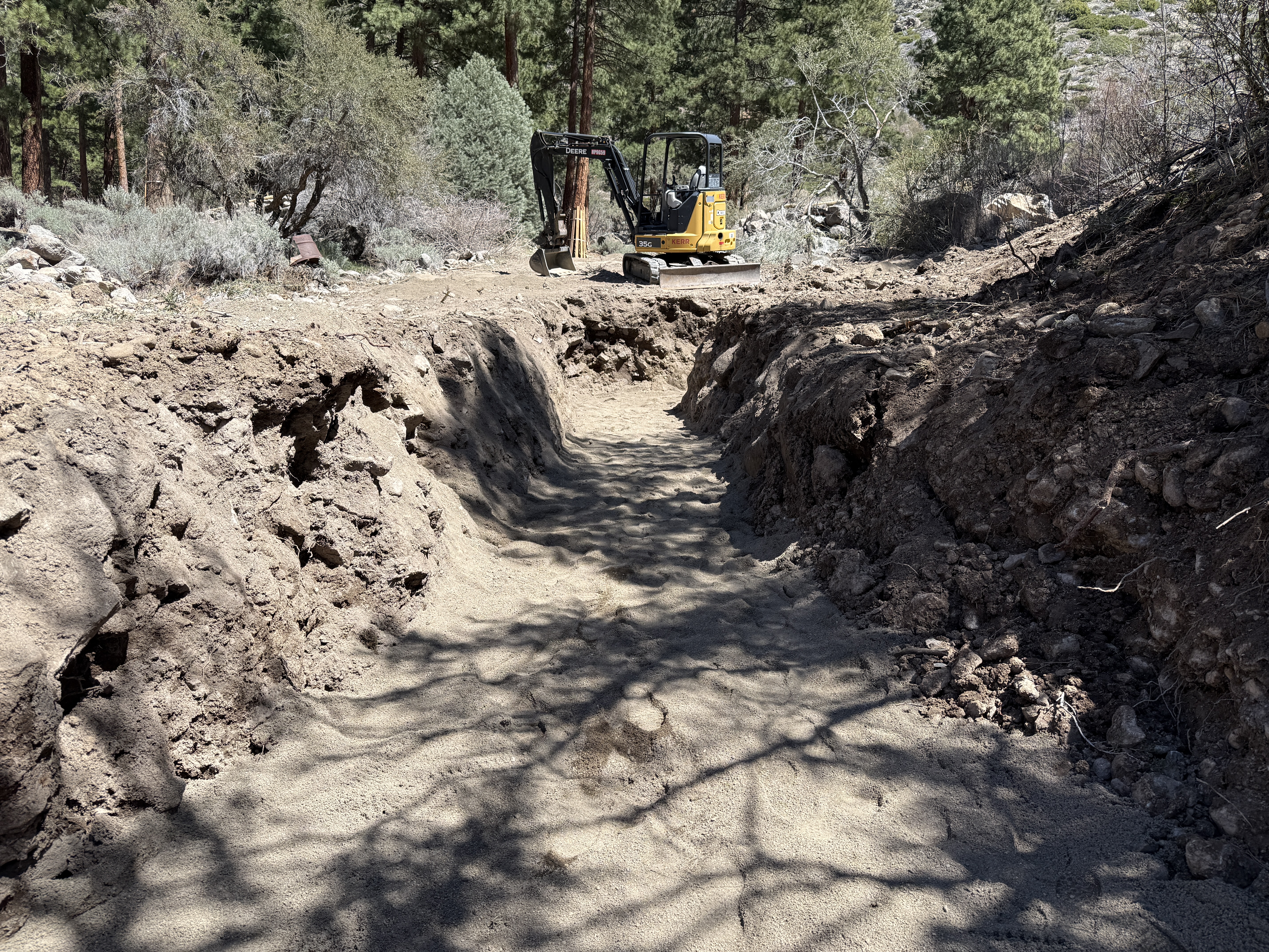 dirt and soil trench clear daylight unobstructed with forested surroundings