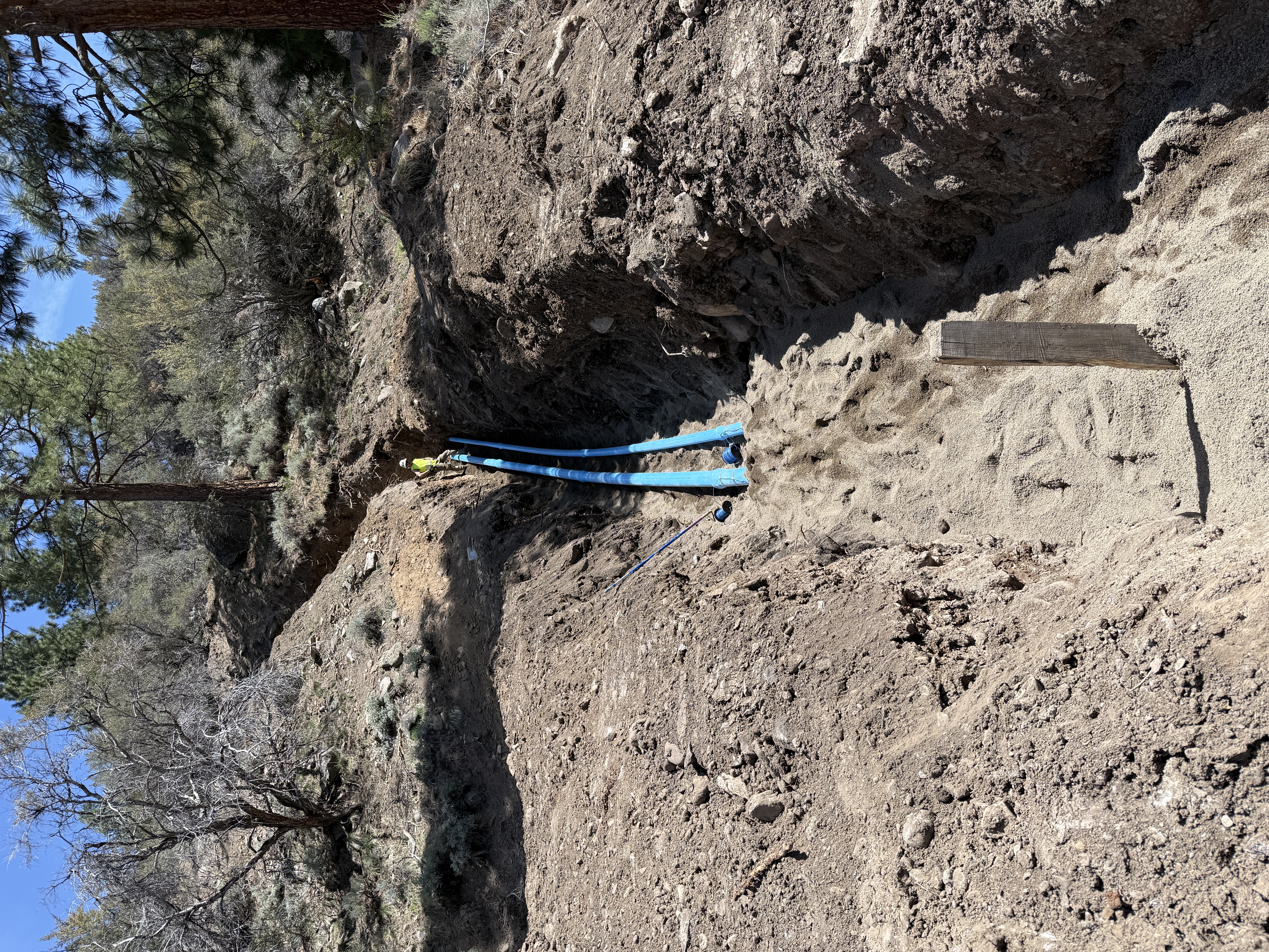soil with trench cut sunny with clear visibility remote area with sparse vegetation
