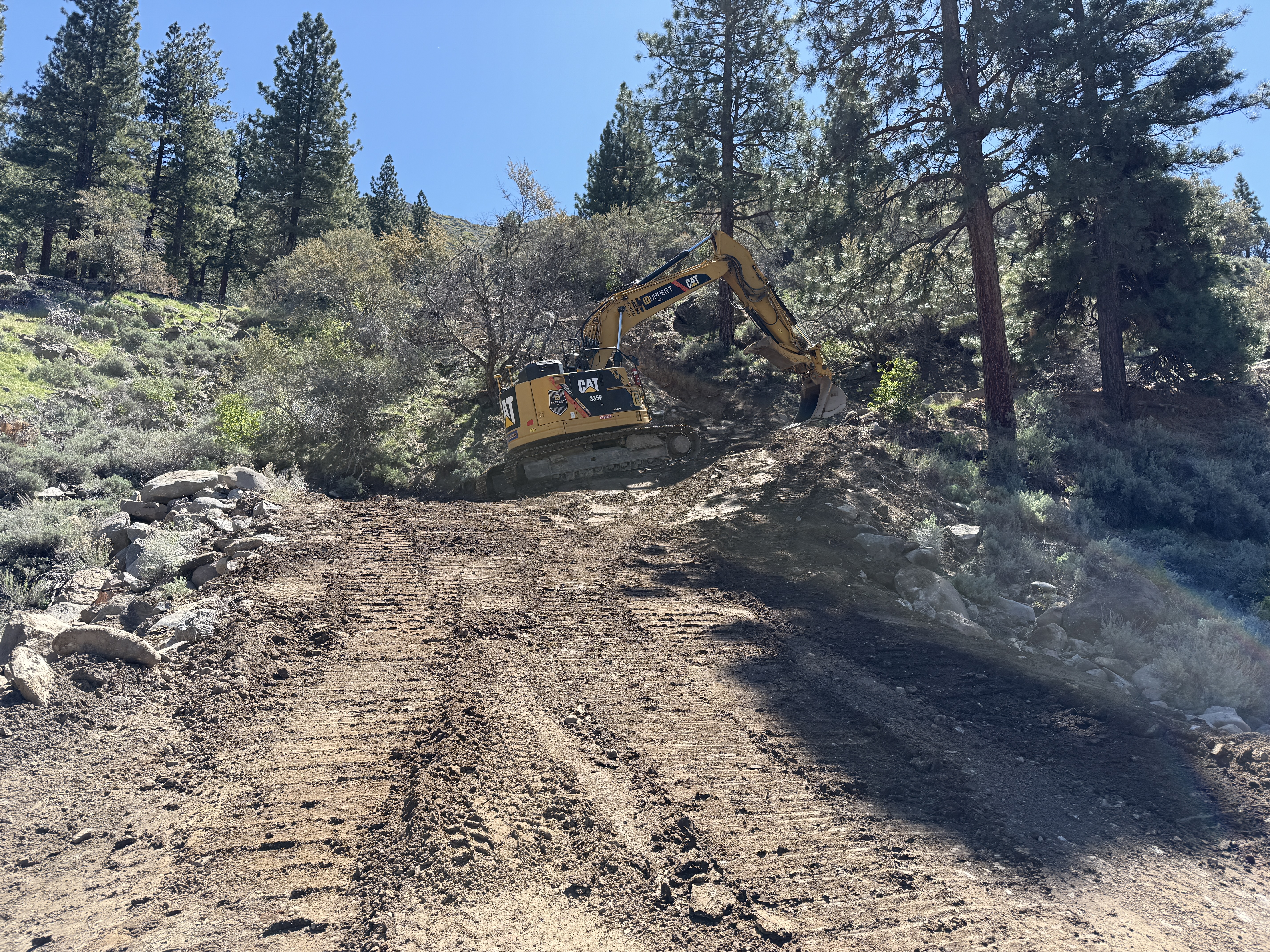 dirt path with rocks on a slope clear daylight wide dirt path, accessible for equipment