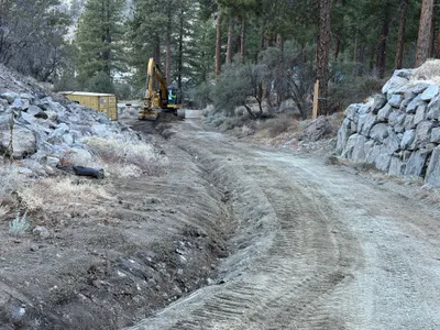dirt road with loose gravel and soil daylight with clear weather clear access with potential erosion hazards