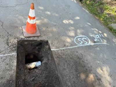 trench with surrounding pavement clear daylight open, with visible vehicle access