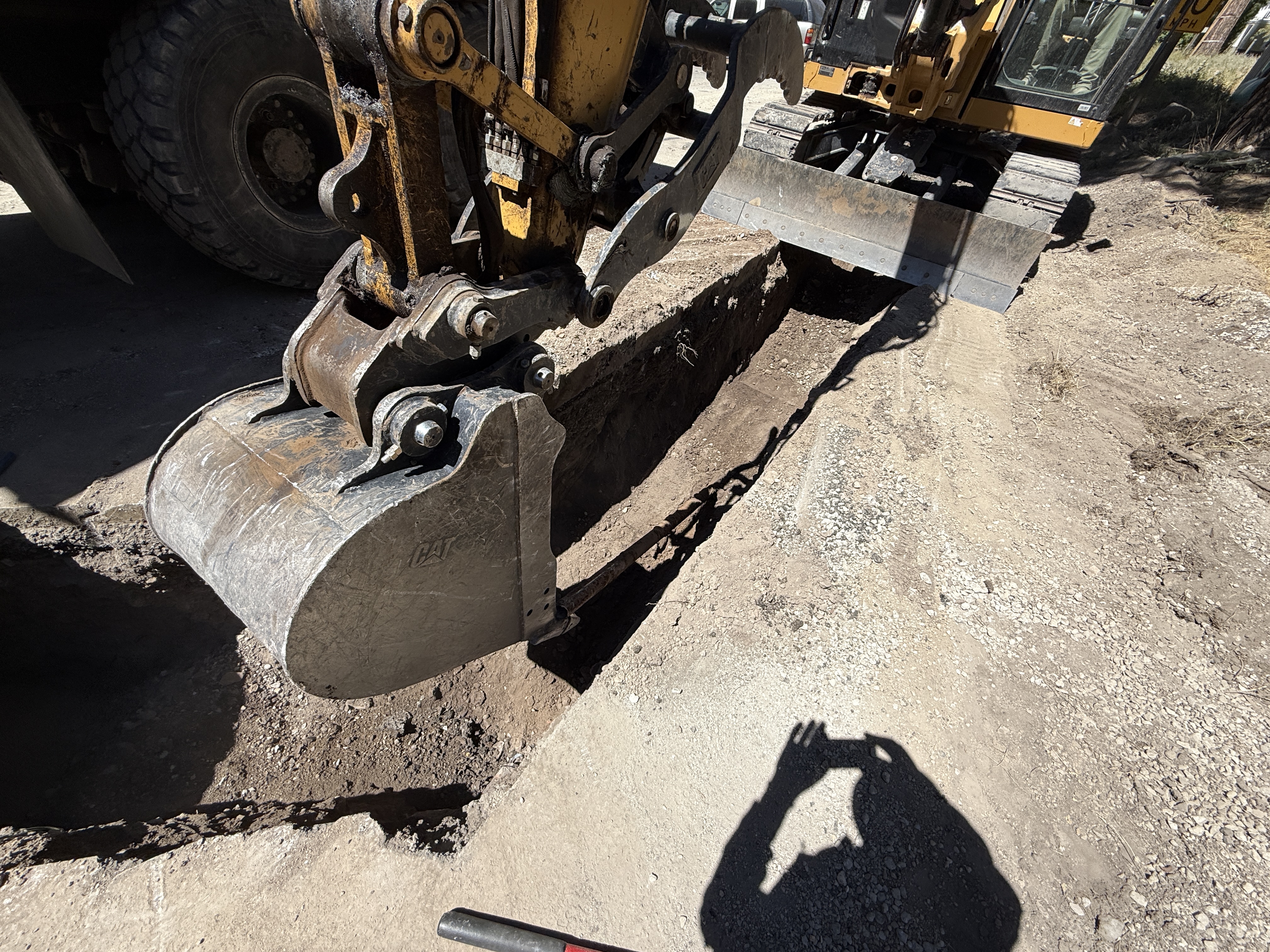 dirt with visible trench sunny with shadows unrestricted access around equipment