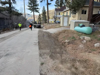 Basic PPE is visible, including a hard hat and high-visibility vest.