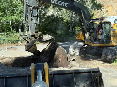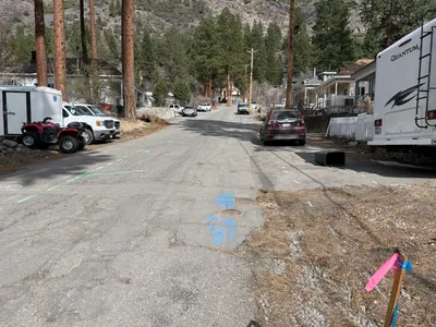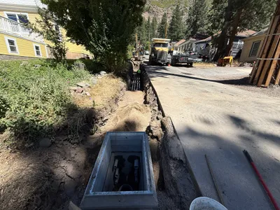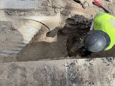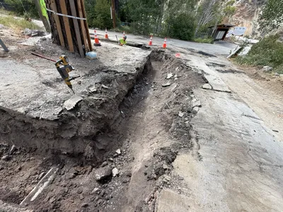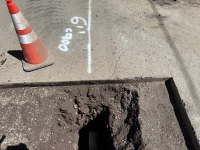 trench and adjacent asphalt or concrete daylight conditions with clear weather limited access due to trench and cones