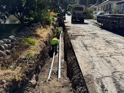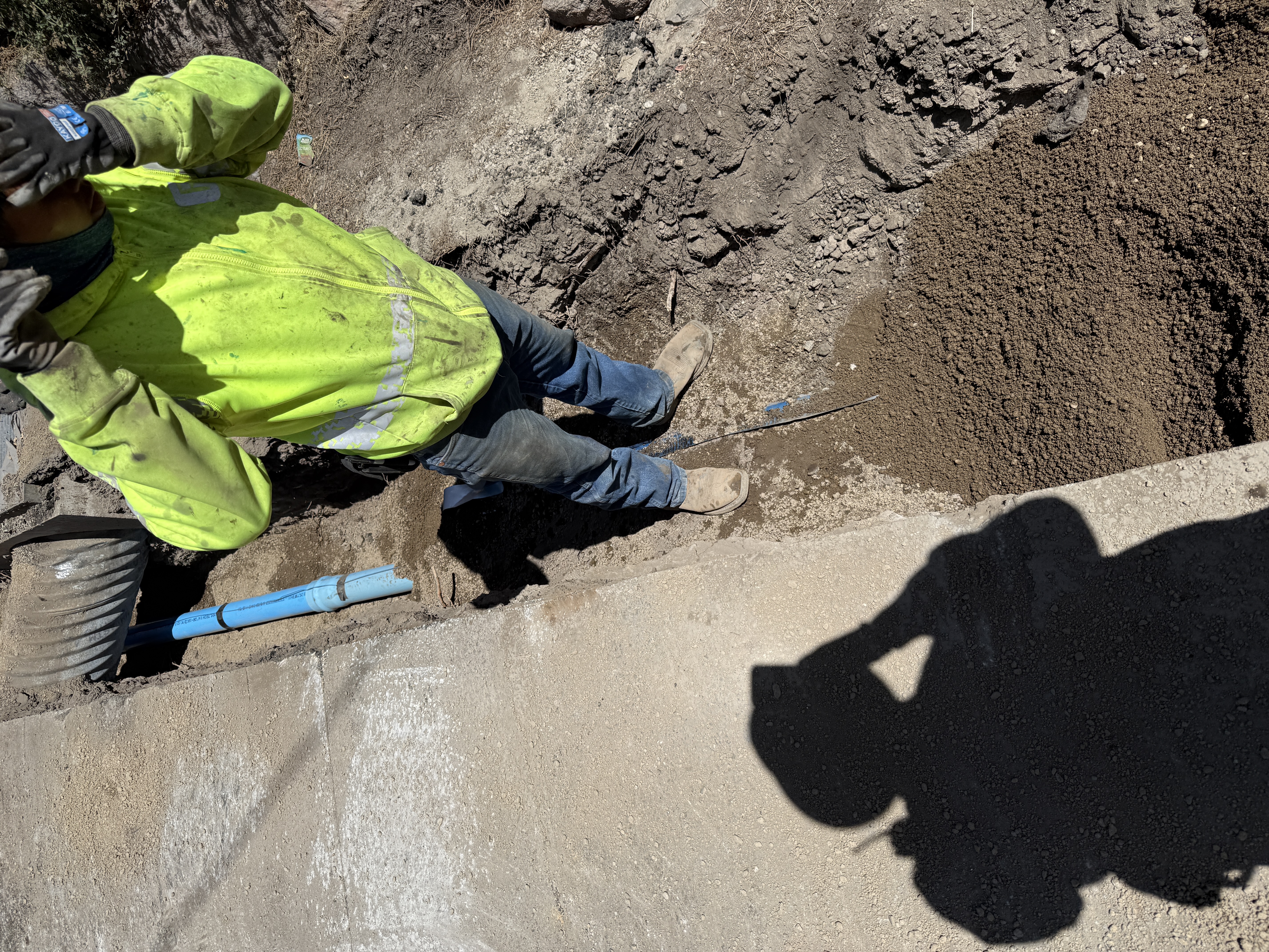 Safety features such as PPE are visible; however, trench safety controls are not visible in frame.