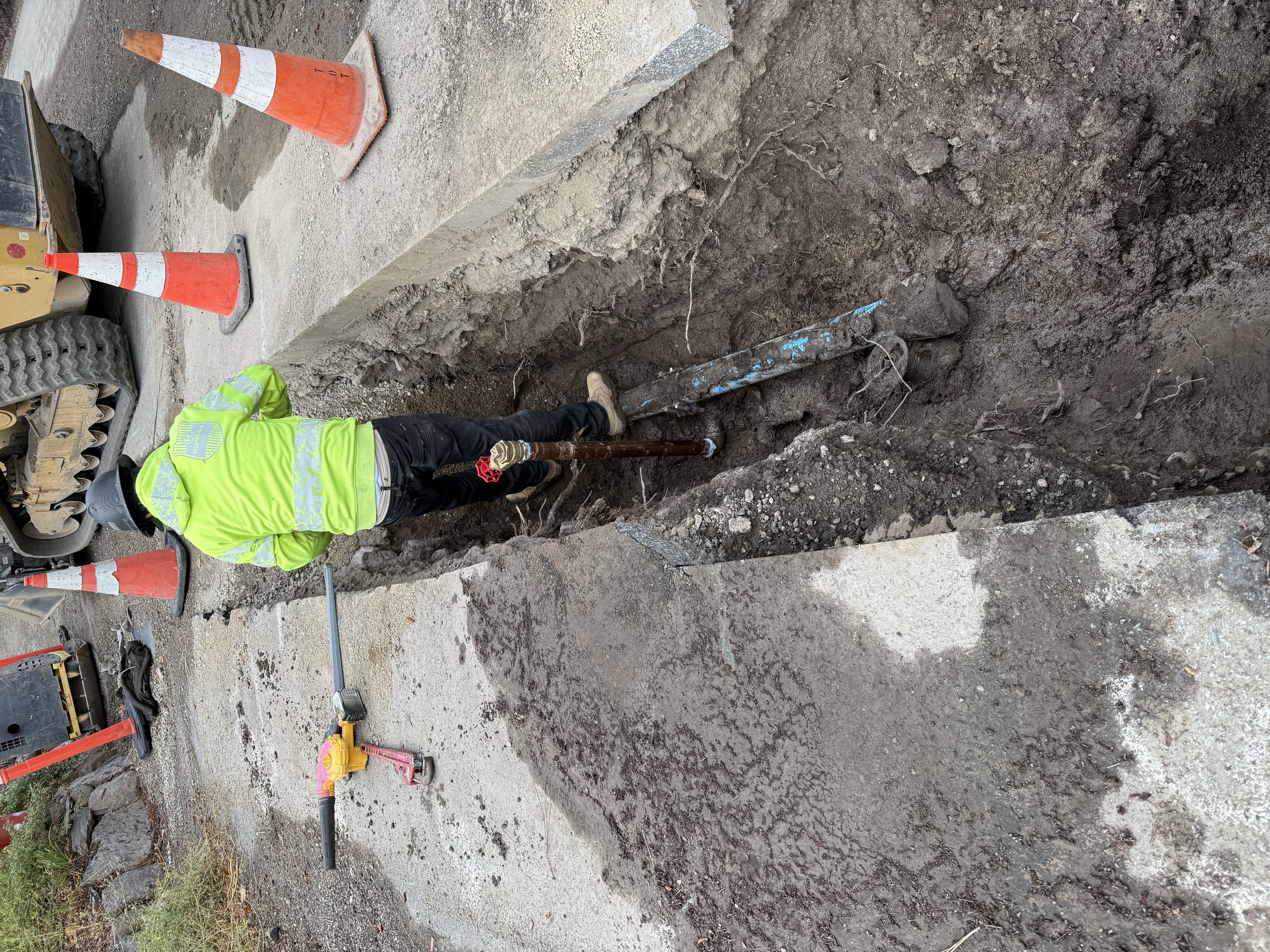 paved surface with trenching daylight conditions equipment and cones suggest controlled access
