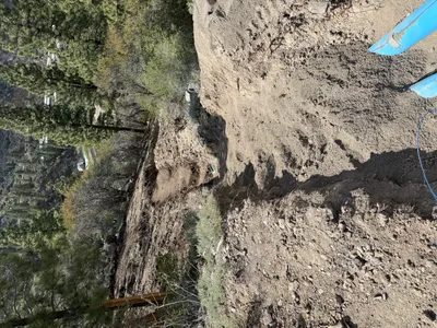 uneven dirt and gravel with a trench daylight conditions edge of a slope with limited access around trench