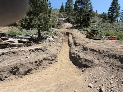 soil with visible grading clear sky and bright daylight ample space for staging with open layout