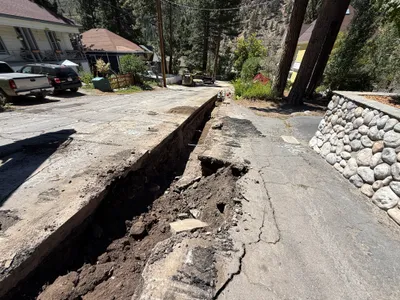 soil and dust with an open trench daylight conditions undetermined access, with visible cones along the trench
