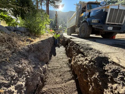 surrounding soil bright lighting indicating a sunny day open vault for access