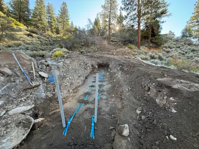 rocky soil in the trench not clearly visible clear trench access