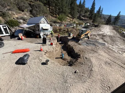 soil and gravel trench daylight clear access with some congestion due to equipment