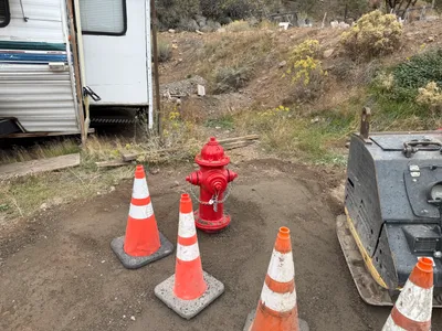 Basic safety controls such as caution tape and cones are used, and PPE is worn by workers.