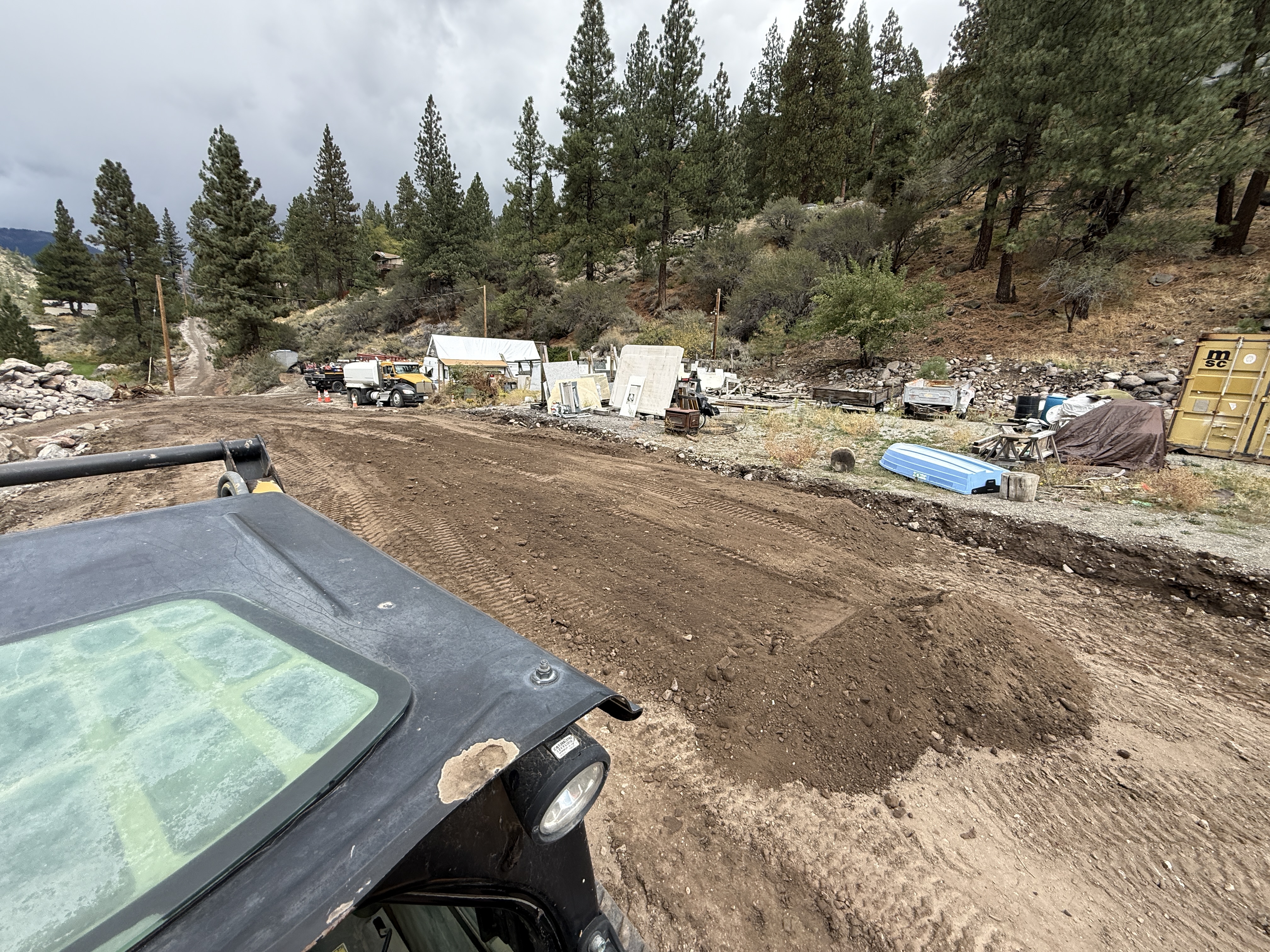 graded dirt path overcast access appears adequate with visible material laydown