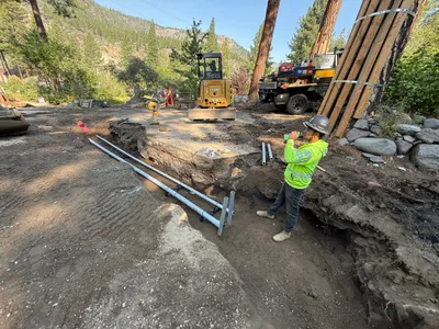 PPE such as hard hats, hi-vis vests, and work boots are visible. No additional safety controls are visible in frame.
