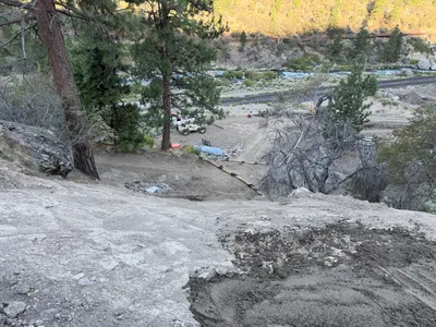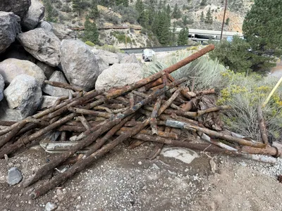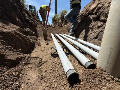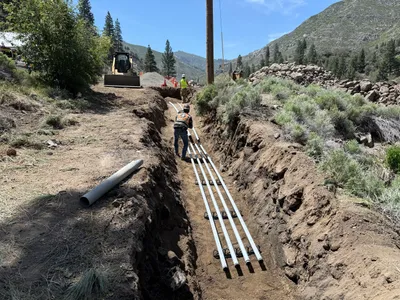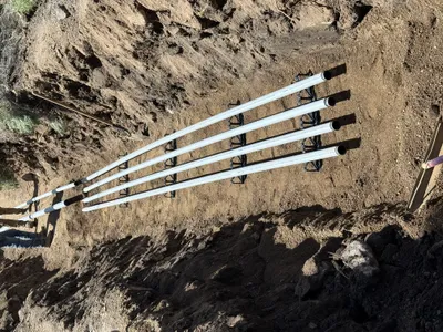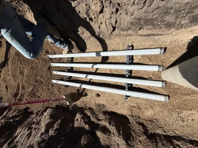 open trench with gravel and soil sunny with good lighting limited space around trench