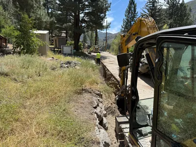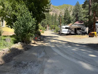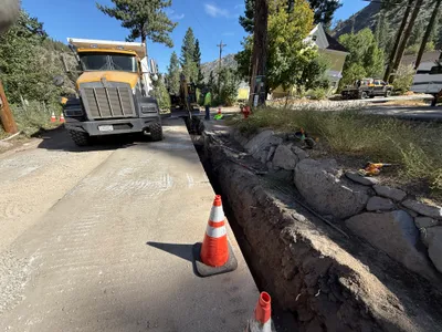 paved surface with chalk markings sunny day with good visibility equipment set up on pavement with accessible area