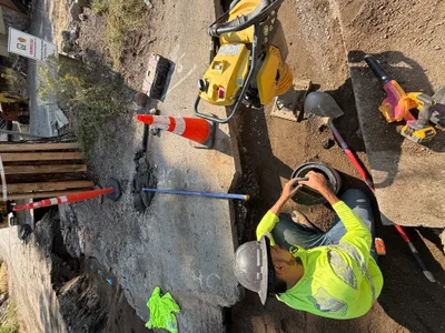 Traffic cones are used for controlling pedestrian or vehicle access around the survey area.
