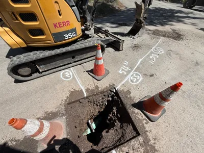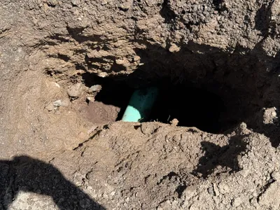 Site with initial excavation revealing a portion of an existing pipeline.