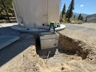 Installation of vertical tank structure on site.