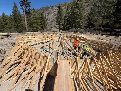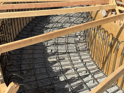 Wooden formwork installed for concrete structure.