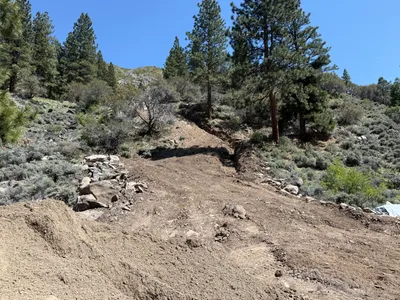 The site was heavily vegetated with uneven terrain and visible machinery starting excavation work.