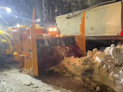 Late construction phase, pavement surfaces are already in place, weather appears cloudy as surfaces are wet.