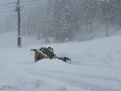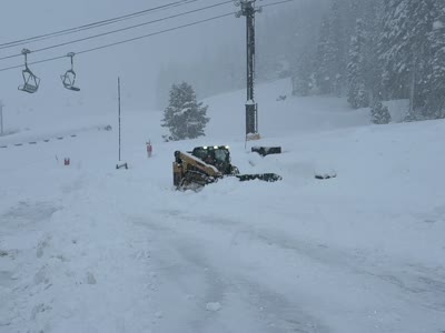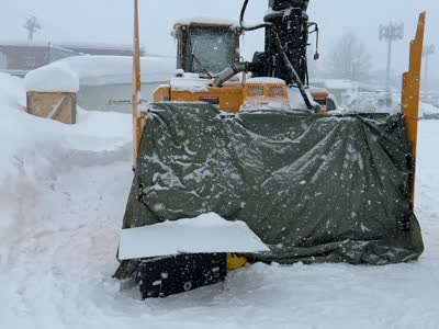 The site is experiencing heavy snowfall with overcast lighting indicating daytime conditions.