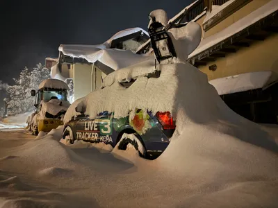 snow-covered vehicles